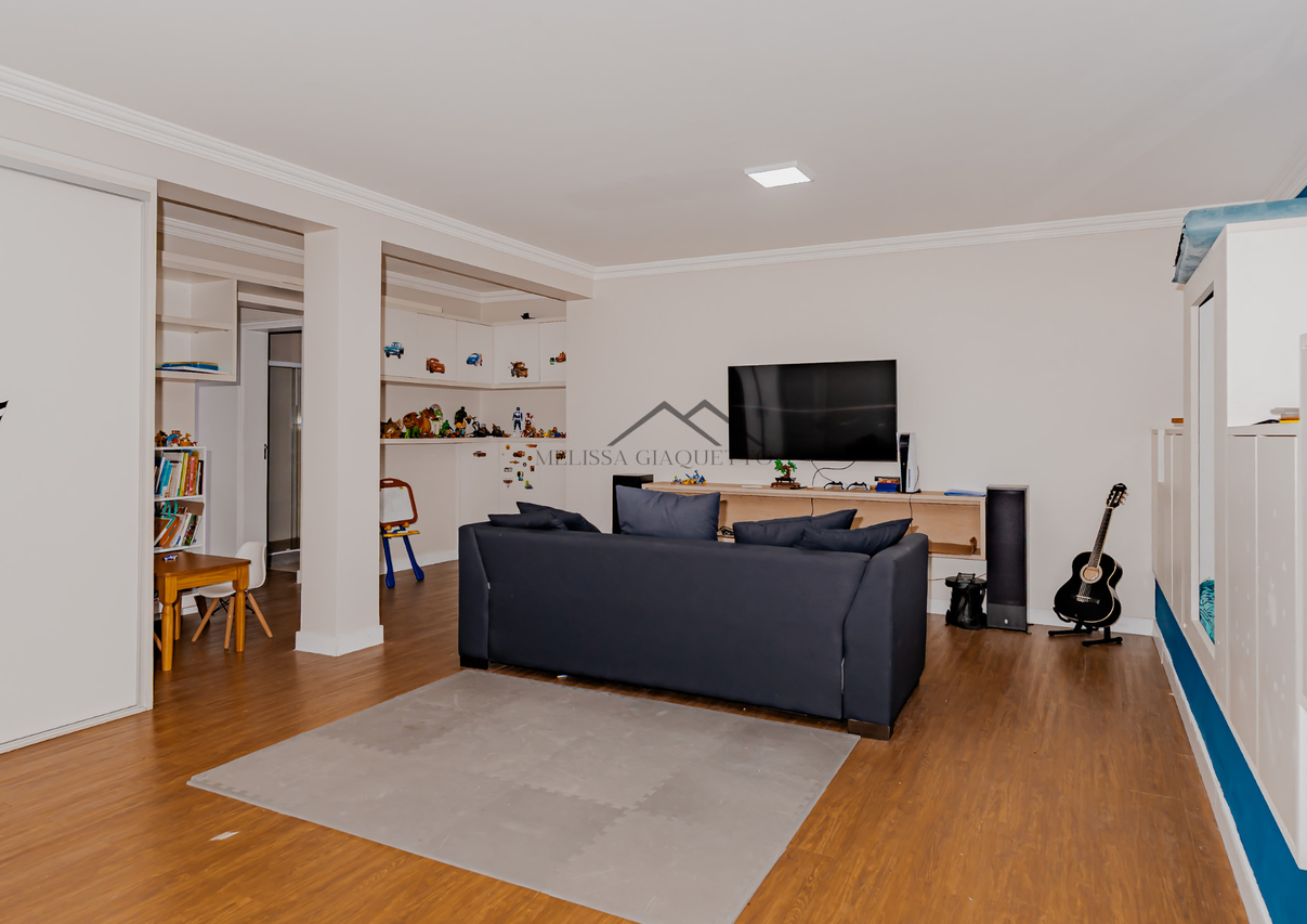 • Espaço multiuso no pavimento inferior com banheiro auxiliar (atualmente brinquedoteca)