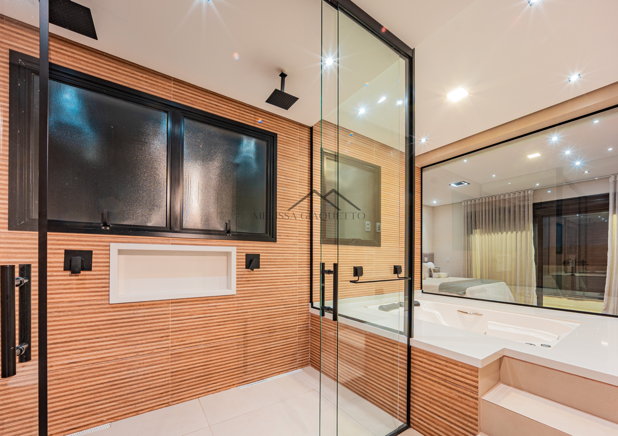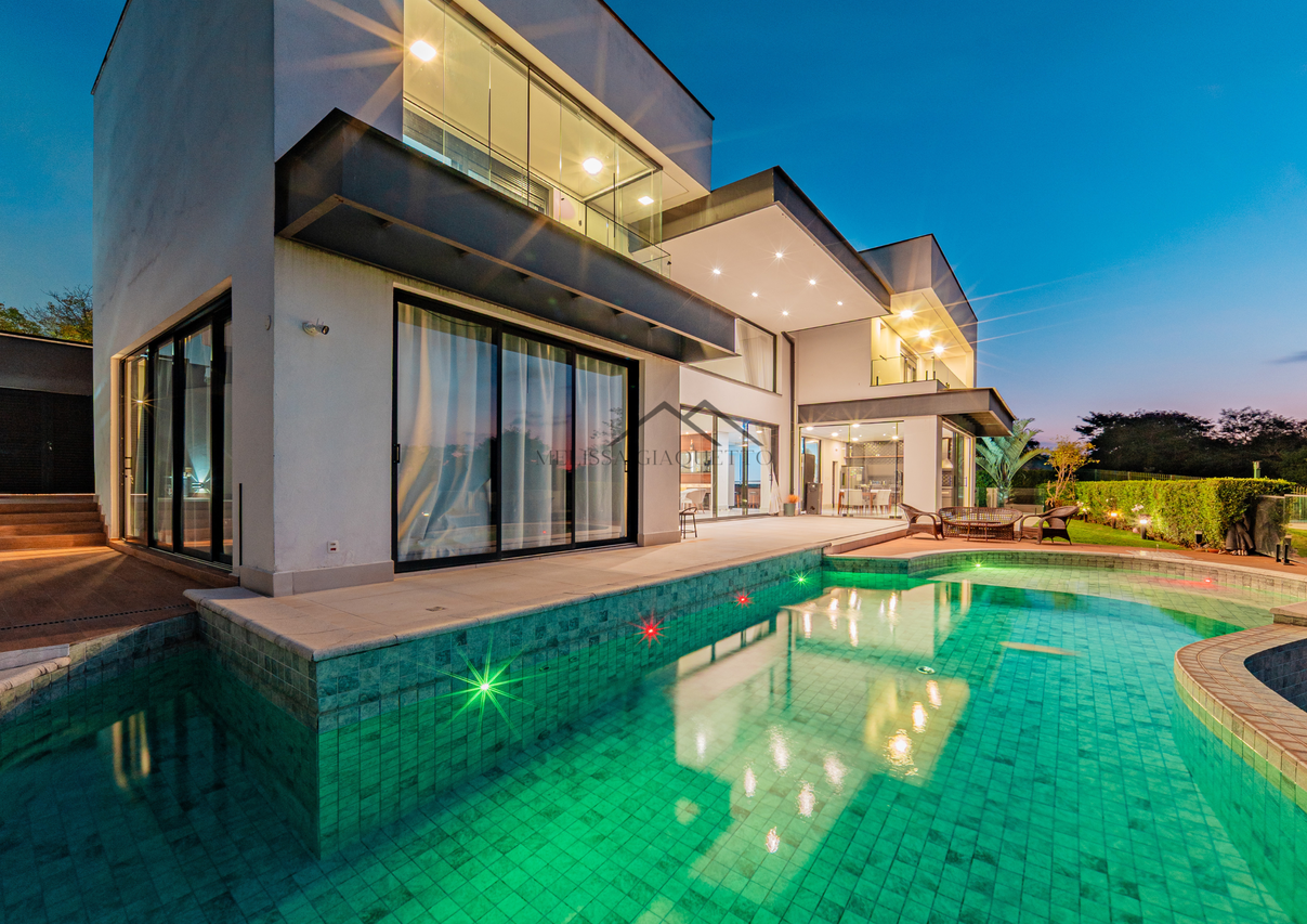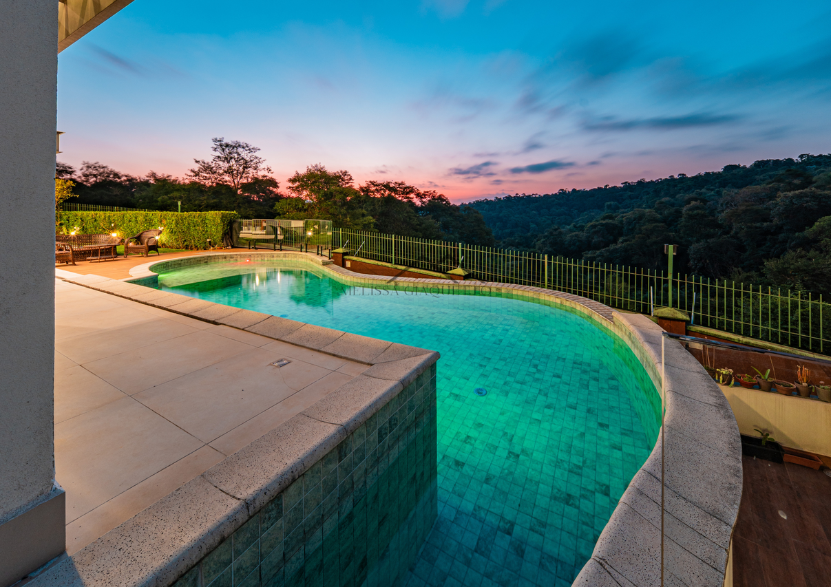 Terreno 710,29 m² Área construída 634,95 m² 4 Suítes todas com ar condicionado Sala de Estar e Jantar Cozinha Ampla Lavabo Piscina com vista Quarto de colaborador
