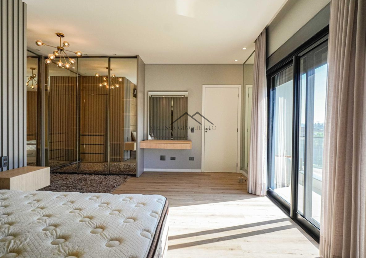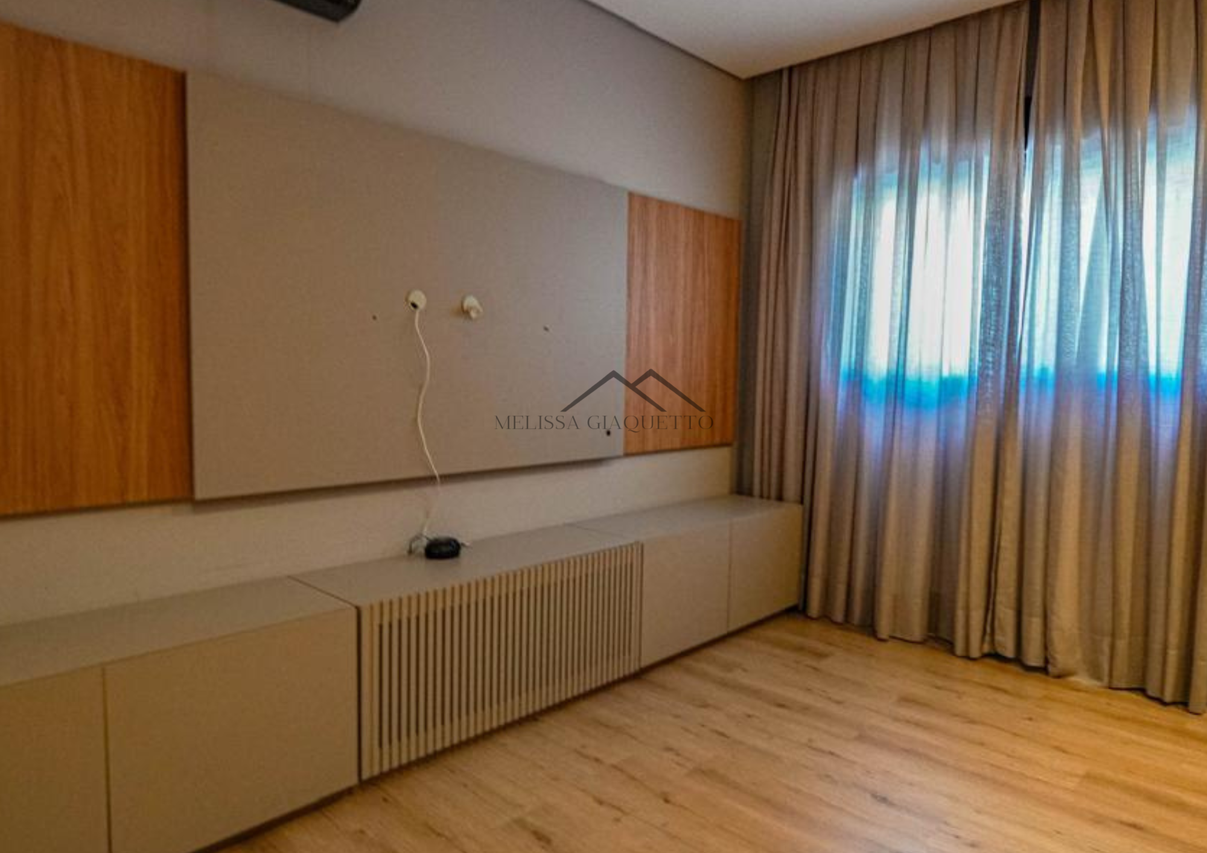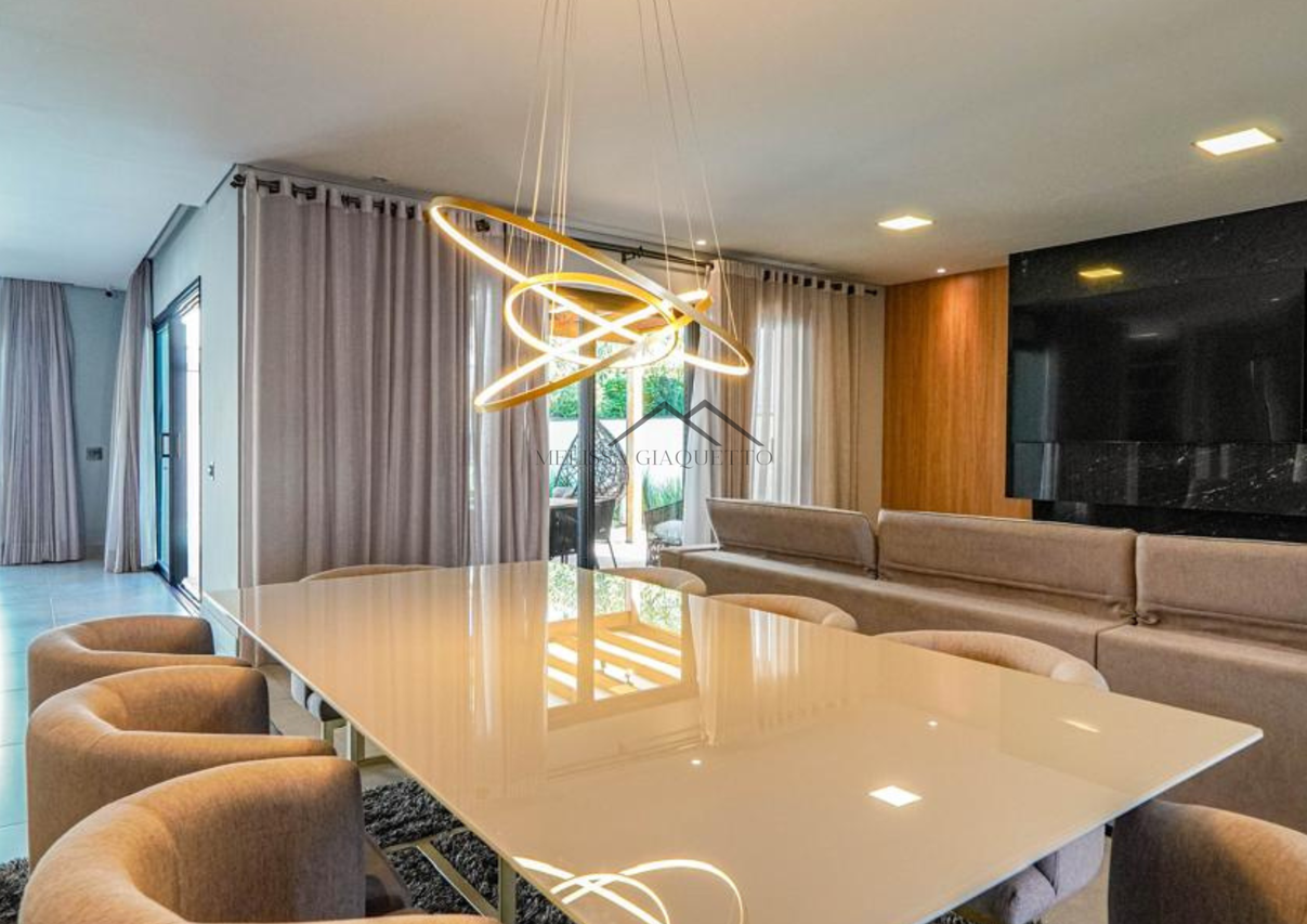 O living para 3 ambientes, incluindo lareira, se conecta com a cozinha completa e a área gourmet. São 4 suítes completas de armários, além de lazer com piscina com cascata.