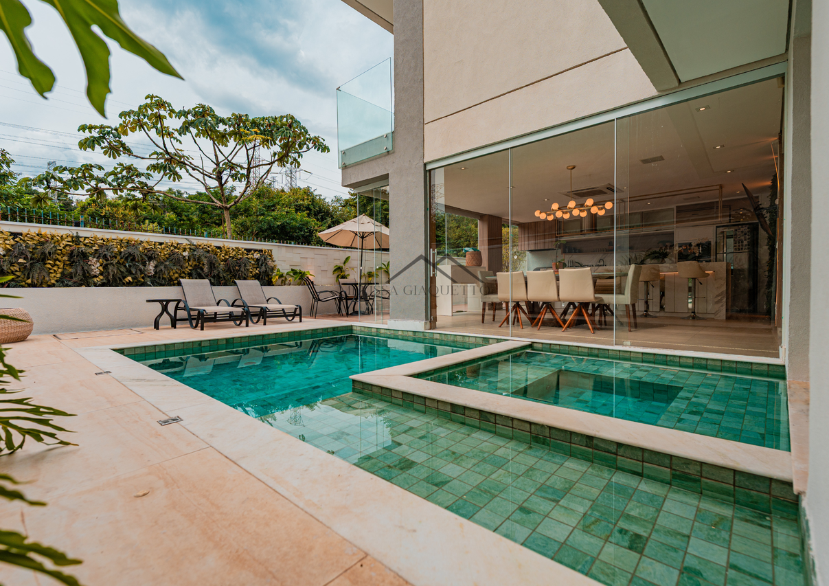 Residência elegante, com design contemporâneo e ambientes bem distribuídos, oferecendo conforto, privacidade e praticidade.