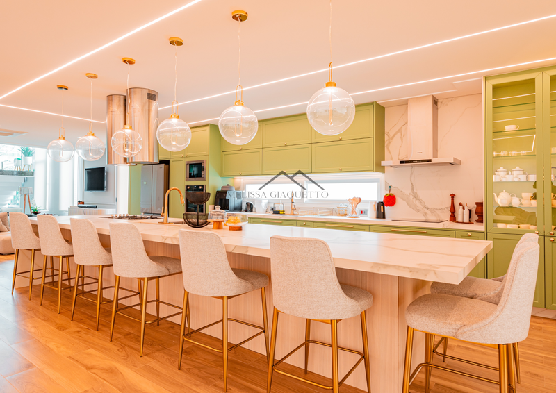 Com um terreno plano de 1.260 m², esta residência foi projetada para proporcionar uma experiência única de conforto, funcionalidade e luxo. Com 6 suítes, sendo duas no térreo e quatro no piso superior, cada espaço foi planejado para garantir a privacidade e o descanso perfeito. O ambiente social é deslumbrante, com marcenaria exclusiva Zeni Móveis, eletrodomésticos de alta performance da Cuisinart, e uma adega climatizada Joshua com capacidade para 515 garrafas, oferecendo uma verdadeira experiência gourmet para os apreciadores de vinhos.