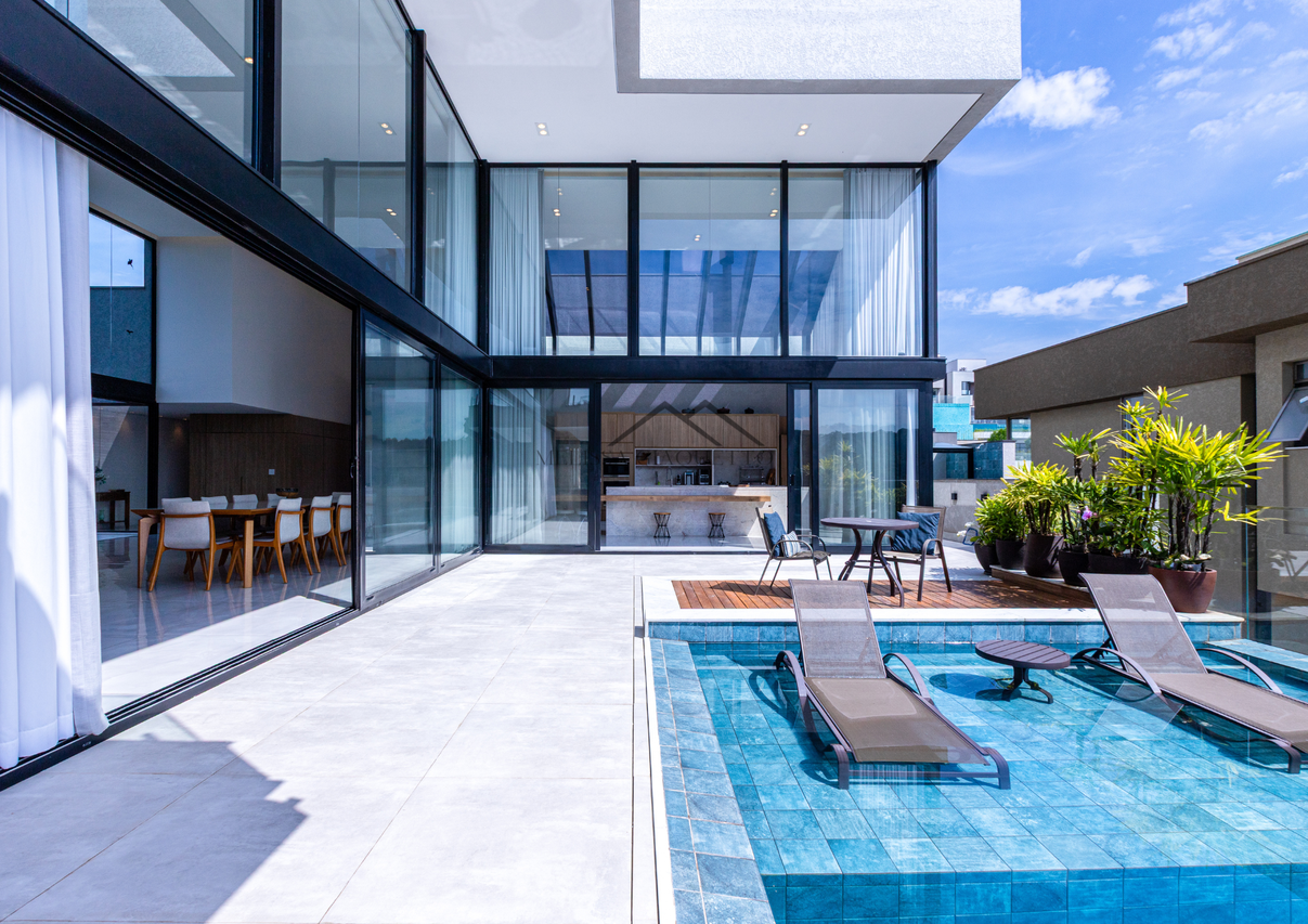 Com 1.060 m² de área construída em terreno de esquina com 1.269 m², esta casa oferece 4 suítes luxuosas, incluindo master com banheiros Sr. e Sra. e hidromassagem. Ambientes amplos e integrados, sala com pé-direito duplo, lareira a lenha, adega estilo italiana, 2 escritórios (um com varanda e vista), elevador, área gourmet completa, salão de festas com forno de pizza e de pão, piscina aquecida com borda infinita, pomar com mais de 35 árvores frutíferas e sistema fotovoltaico. Conta ainda com um apartamento anexo de 60 m² para caseiro. Garagem para 8 veículos (5 cobertos).