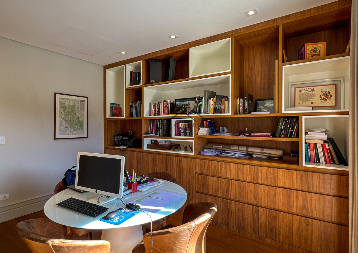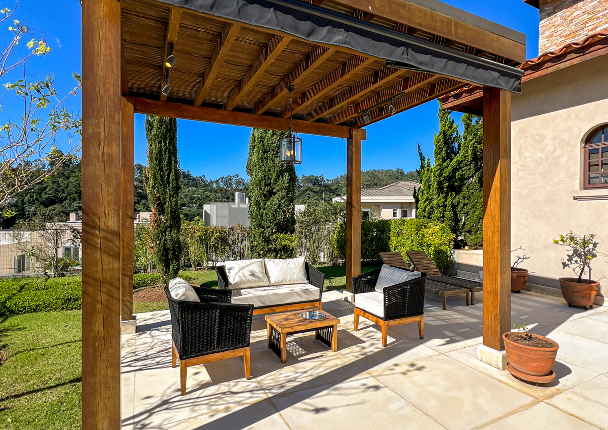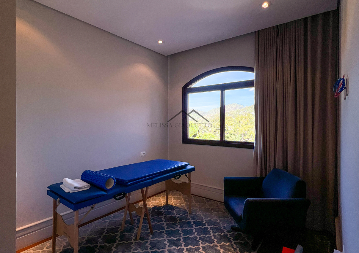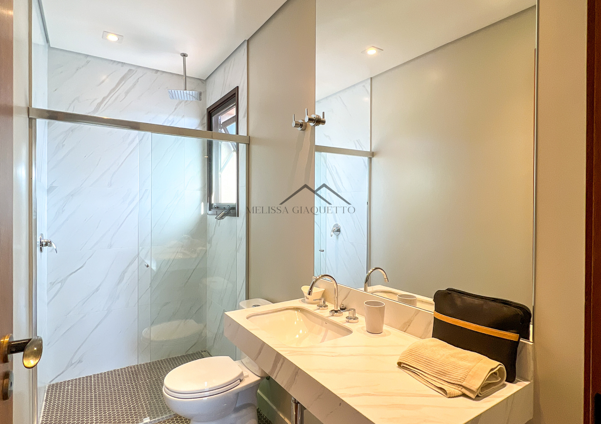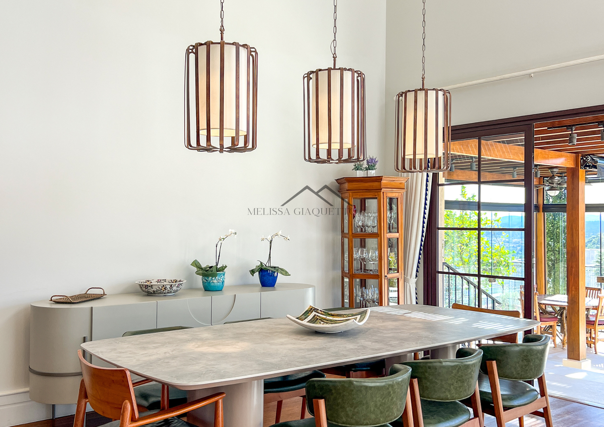 Conta com 5 suítes, sendo 2 no térreo, todas com closet, incluindo suíte máster com 2 closets exclusivos. O living e a sala de jantar possuem pé-direito duplo, proporcionando amplitude e luminosidade. Destaque para a adega climatizada para até 370 garrafas, cozinha gourmet integrada e cozinha de apoio.