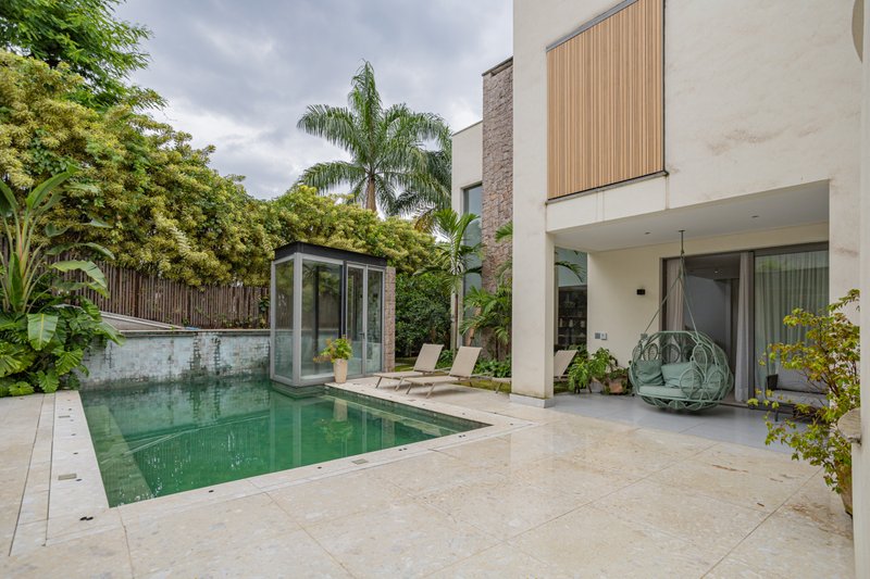 - Área Gourmet: Deslumbrante, com teto em madeira Neobambu, espelhos d’água, sauna e piscina com revestimento em pedras hijau da Palimanan