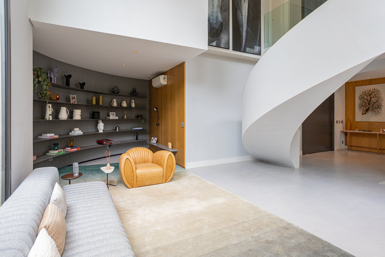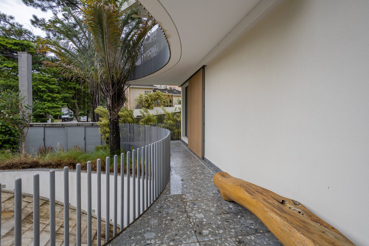 - Sala de Estar: Imponente, com rasgo de vidro revelando paisagismo exuberante