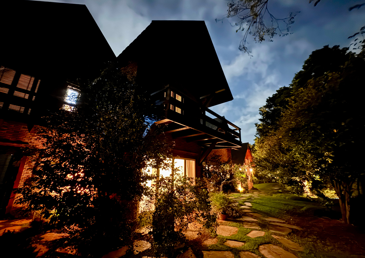 Implantada em um terreno de 3.340 m², com 963 m² de área construída, a casa se integra perfeitamente ao verde, com paisagismo maduro, jardins impecáveis e total privacidade.