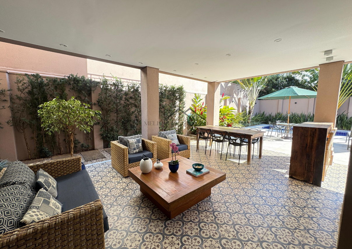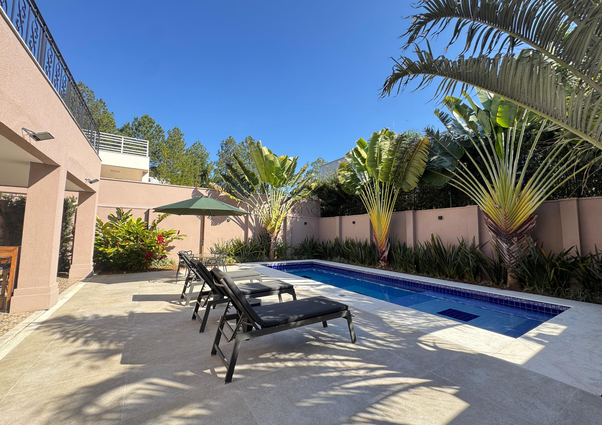 A cozinha é ampla, totalmente equipada e conectada à lavanderia e à suíte de funcionários. A área externa proporciona momentos de lazer com espaço gourmet completo, forno de pizza, churrasqueira e uma piscina ensolarada, perfeita para relaxar e receber amigos.